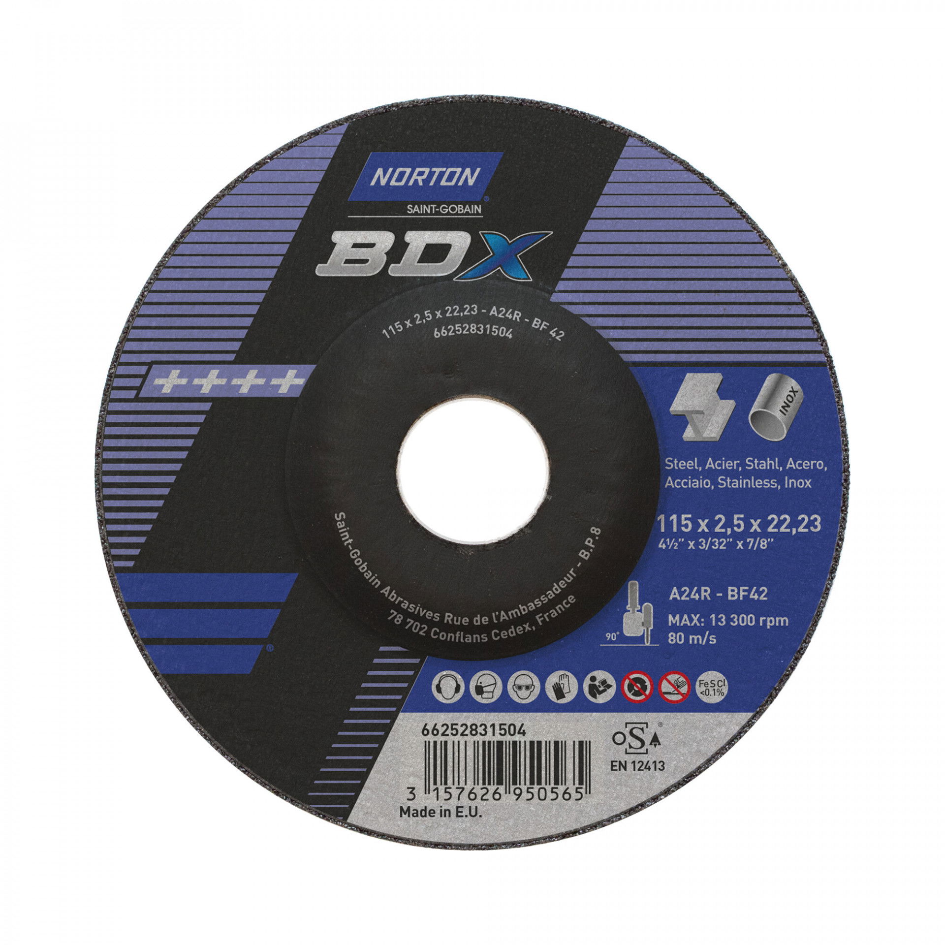 Norton BDX fém-inox vágókorong 115x2,5x22,23 A24R, 25 db/csomag