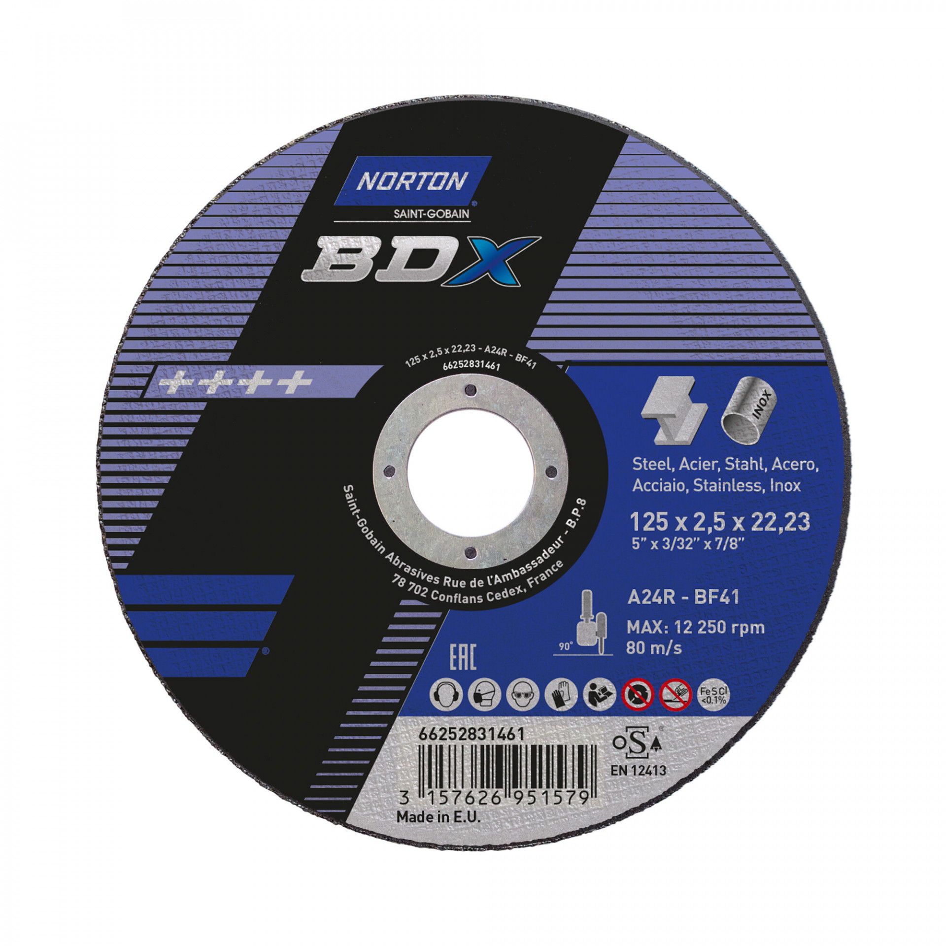 Norton BDX fém-inox vágókorong 125x2,5x22,23 A36X, 25 db/csomag